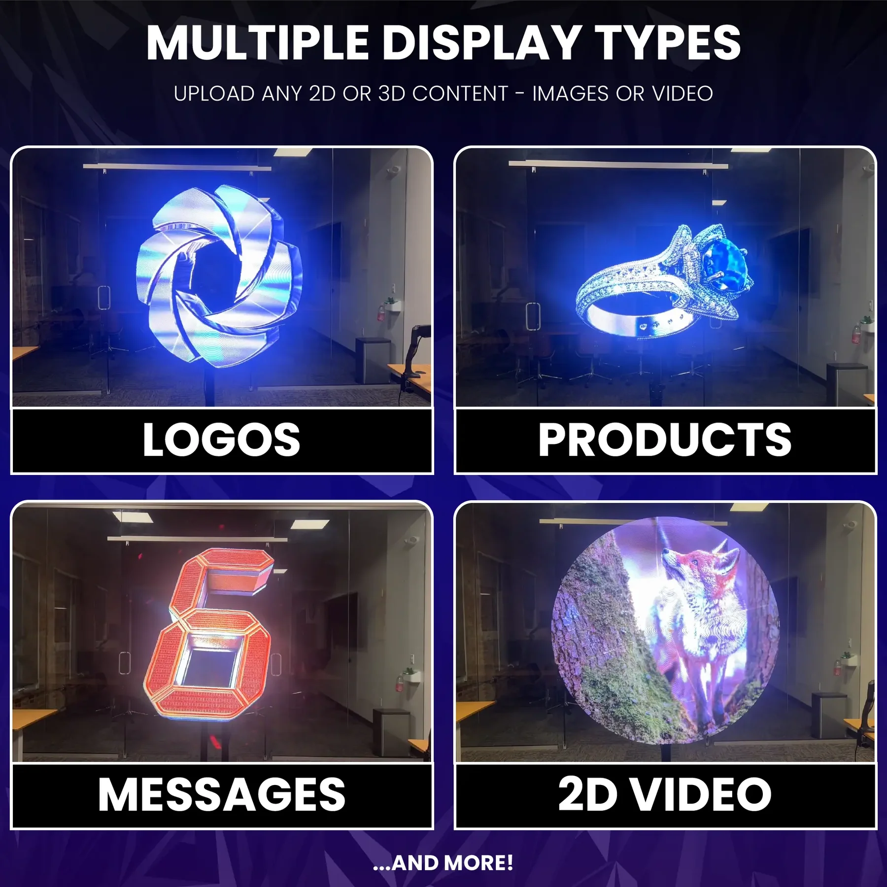 - Retail Stores & Shopping Malls: To attract customers with dynamic 3D advertisements and product displays.